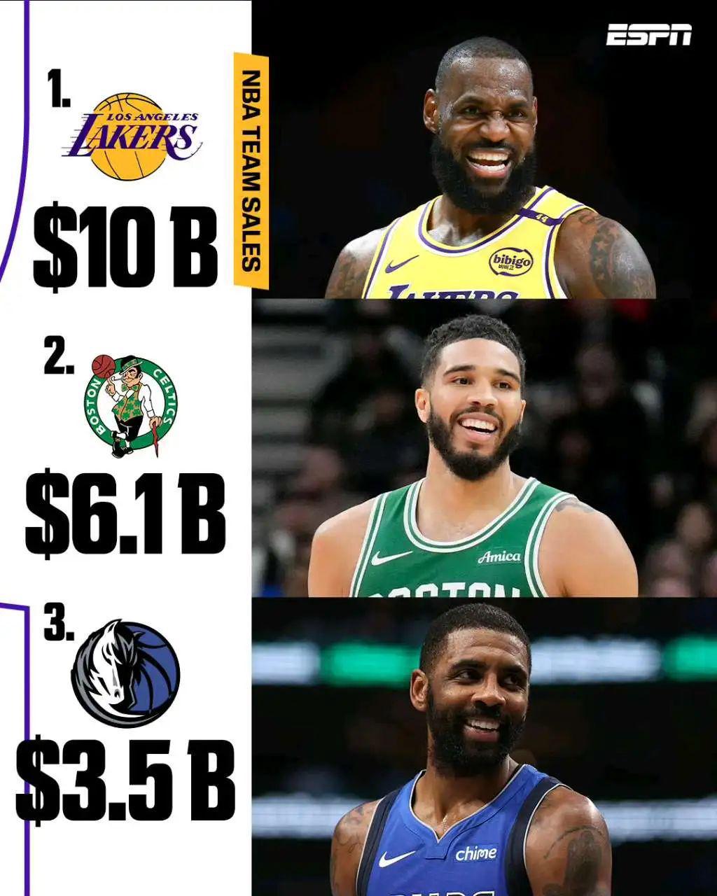 湖人这次的售卖的交易估值约为100亿美元,将是全球职业体育球队最高的成交价格纪录!